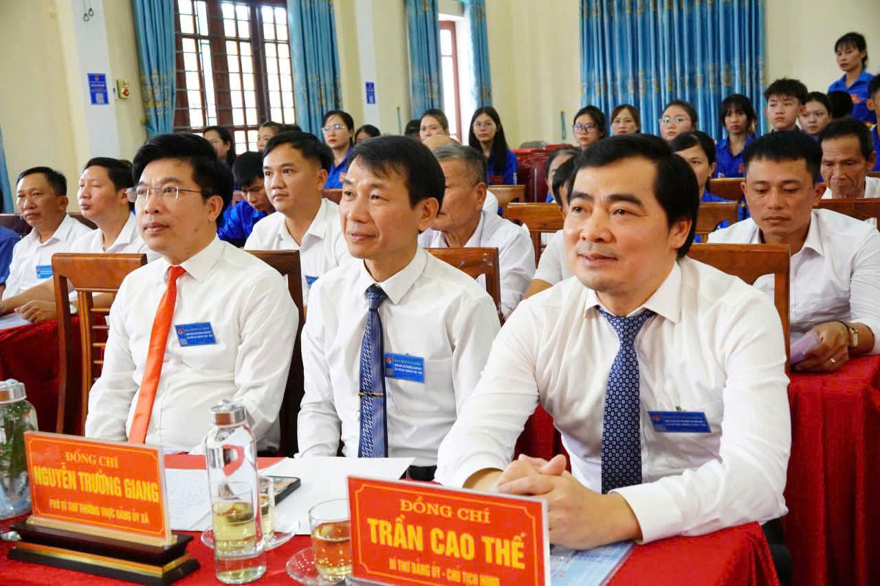 Đồng chí Trần Cao Thế - Bí thư Đảng ủy xã cùng các đồng chí lãnh đạo tham gia Đại hội