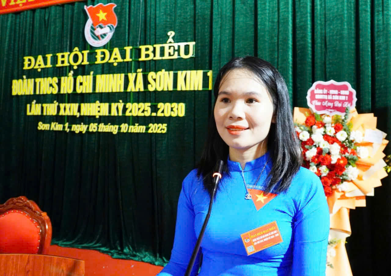 Chiều 05/10, Đoàn Thanh niên Cộng sản Hồ Chí Minh xã Sơn Kim 1 đã tổ chức Đại hội đại biểu lần thứ XXIV, nhiệm kỳ 2025 – 2030. Tham dự và tặng hoa chúc mừng có đồng chí Nguyễn Thị Ny Hương – Ủy viên BCH Trung ương Đoàn, Tỉnh ủy viên, Phó Chủ tịch Ủy ban MTTQ tỉnh Hà Tĩnh, Bí thư Tỉnh đoàn Hà Tĩnh; đồng chí Trần Cao Thế - Bí thư Đảng ủy, Chủ tịch HĐND xã; đồng chí Nguyễn Trường Giang – Phó Bí thư Thường trực Đảng ủy; các đồng chí UVBTV Đảng ủy, các phòng, ngành, các cơ quan đóng trên địa bàn.