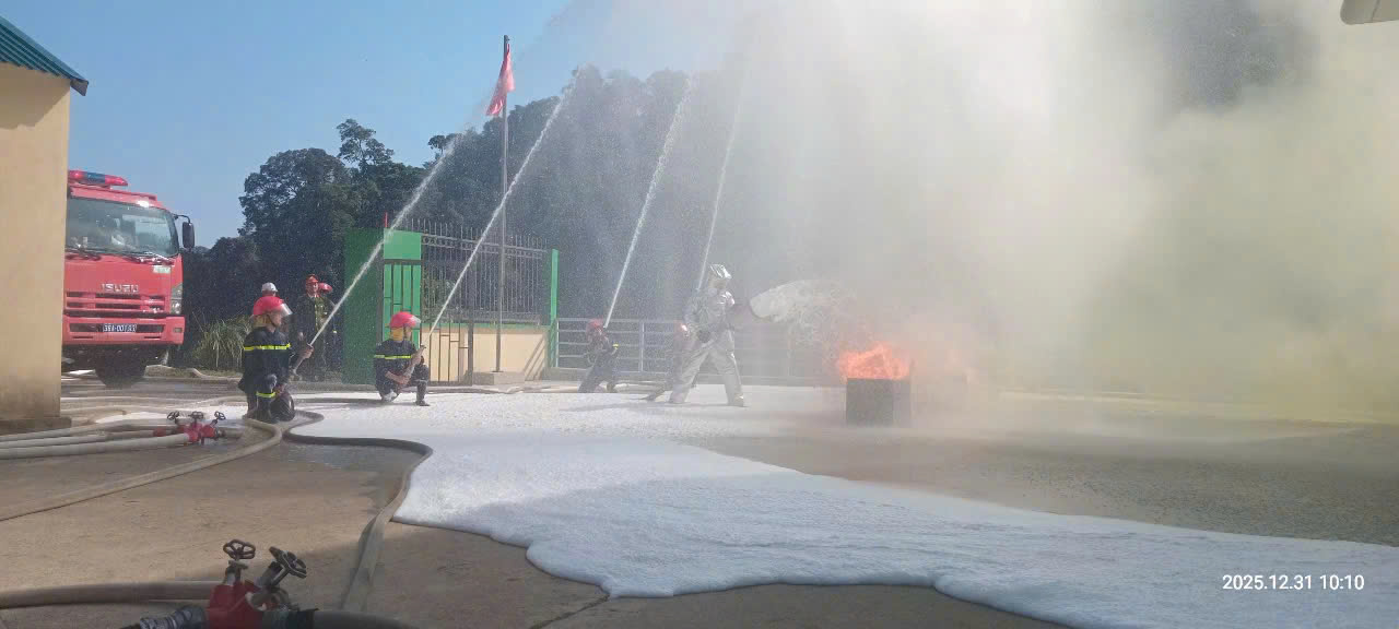 Tình huống giả định, khoảng 9 giờ 30 phút sáng ngày 31/12/2025, tại khu vực phòng điều khiển trung tâm, một cán bộ công nhân viên của Nhà máy phát hiện khói và lửa bốc lên. Ngay lập tức, người này hô hoán báo động, đồng thời thông báo cho toàn bộ CBCNV đang làm việc tại Nhà máy nhanh chóng triển khai công tác chữa cháy ban đầu, tổ chức cứu nạn – cứu hộ và báo tin cho Đội PCCC cơ sở cùng lực lượng Cảnh sát PCCC & CNCH chuyên nghiệp đến hỗ trợ, xử lý tình huống theo đúng phương án đã được duyệt.