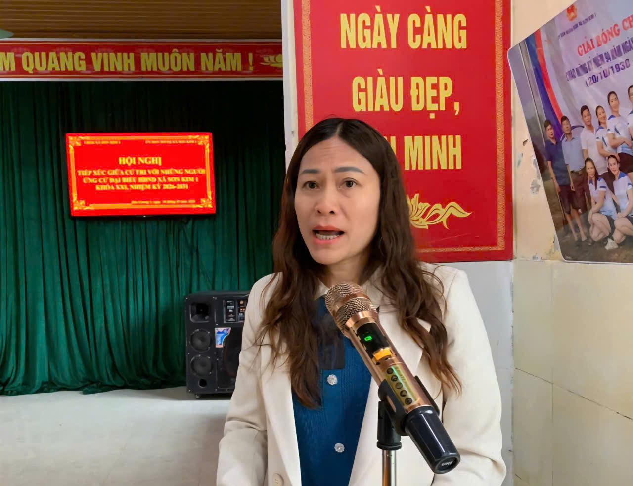 Tại các hội nghị được tổ chức ở từng đơn vị bầu cử, các ứng cử viên đại biểu HĐND xã Sơn Kim 1 nhiệm kỳ 2026-2031 trực tiếp gặp gỡ, tiếp xúc với cử tri, trình bày chương trình hành động của mình nếu được tín nhiệm bầu làm đại biểu HĐND xã.