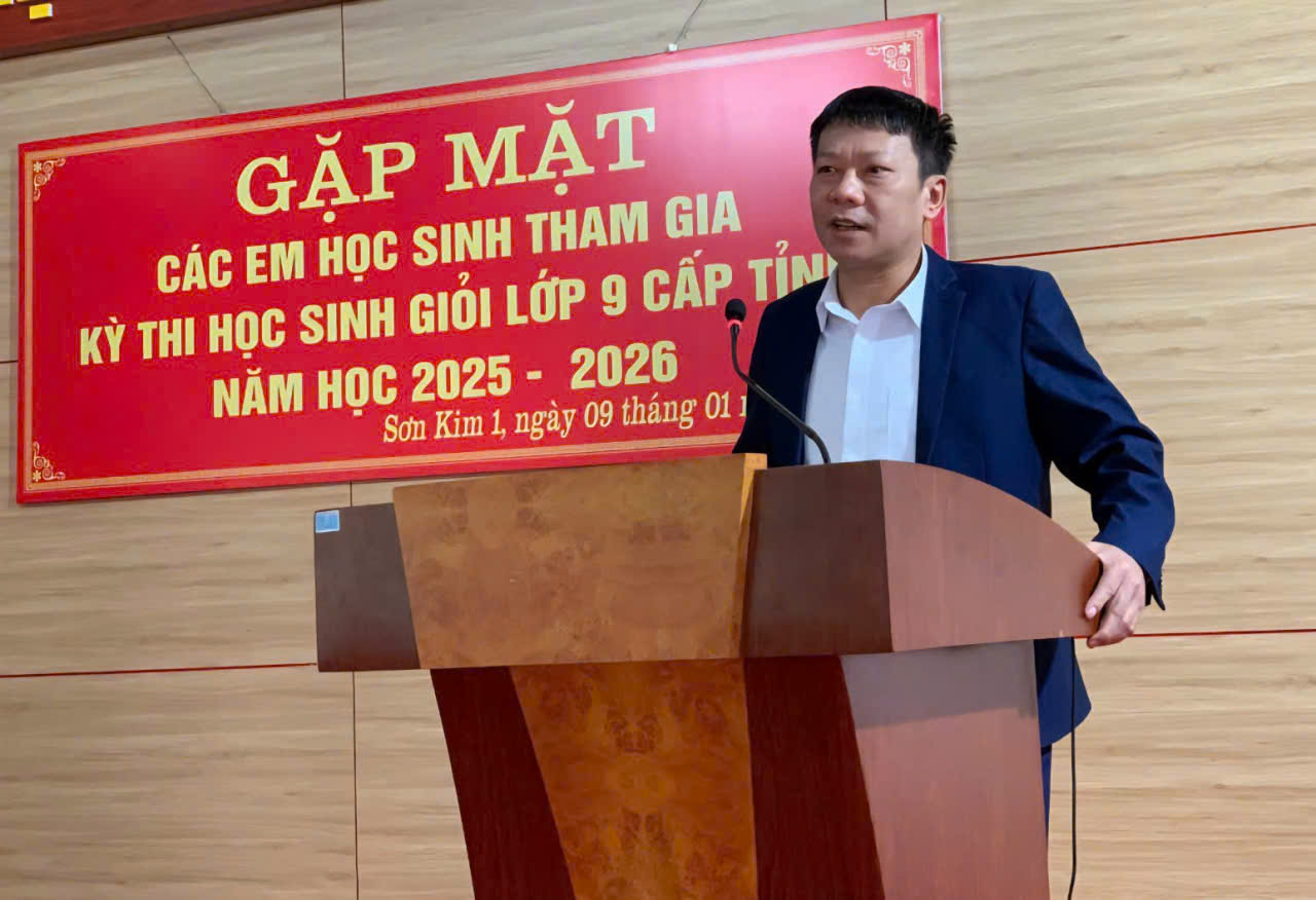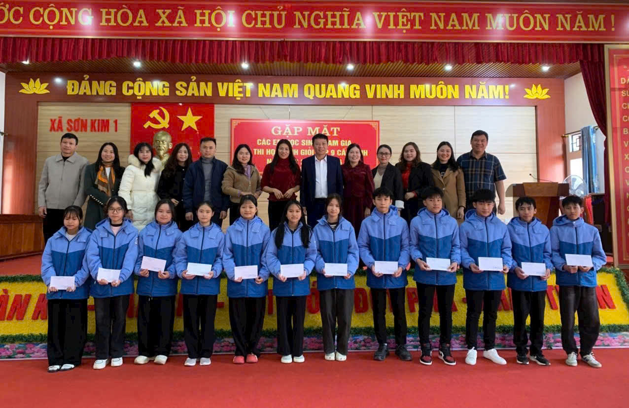 Thực hiện Kế hoạch số 3119/KH - SGDĐT ngày 30/9/2025 của Sở Giáo dục và Đào tạo về việc tổ chức Kỳ thi chọn học sinh giỏi tỉnh lớp 9 cấp tỉnh năm học 2025 – 2026; nhằm kịp thời động viên, khích lệ tinh thần các em học sinh trước kỳ thi, chiều ngày 09/01/2026, Ủy ban nhân dân xã Sơn Kim 1 tổ chức buổi gặp mặt, động viên các em học sinh tham gia kỳ thi học sinh giỏi lớp 9 cấp tỉnh, năm học 2025-2026.