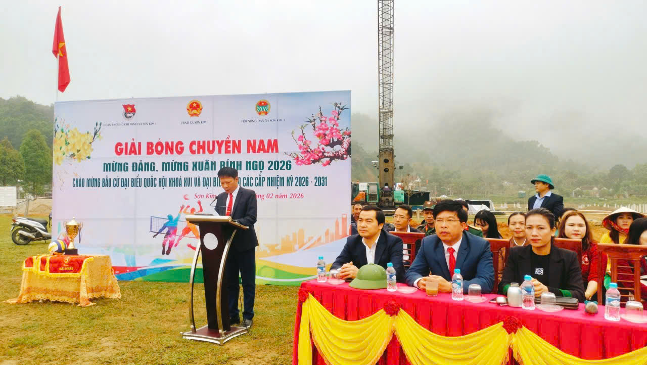 Trong không khí phấn khởi, thiêng liêng của những ngày đầu năm mới; với tinh thần chào đón các sự kiện trọng đại của quê hương, đất nước; chào mừng thành công Đại hội đại biểu Đảng toàn quốc lần thứ XIV, chào mừng bầu cử đại biểu Quốc hội khóa XVI và đại biểu Hội đồng nhân dân các cấp nhiệm kỳ 2026-2031; trong hai ngày 22 và 23/2/2026, xã Sơn Kim 1 tổ chức Khai mạc và thi đấu giải bóng chuyền nam mừng Đảng, mừng xuân Bính Ngọ năm 2026.