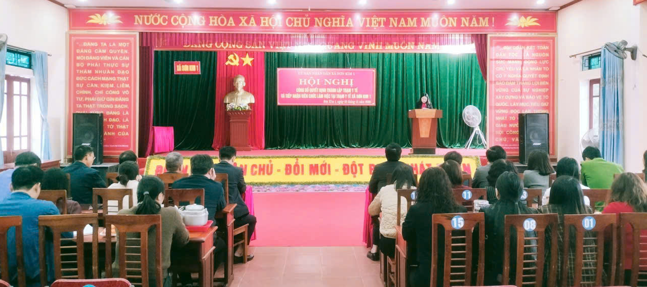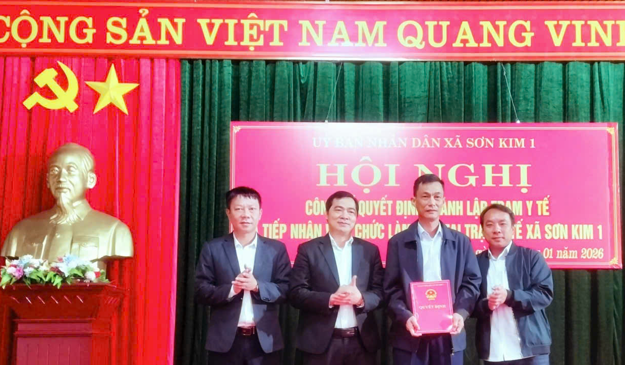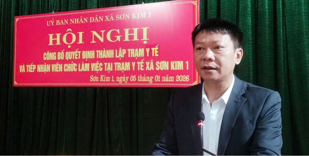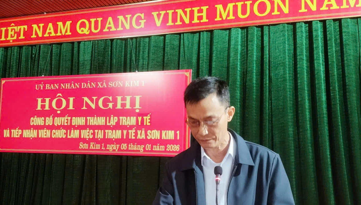 Thực hiện quyết định số 3310/QĐ-UBND ngày 26/12/2025 của UBND tỉnh về việc chuyển giao các Trạm Y tế cấp xã và toàn bộ chức năng, nhiệm vụ, nhân sự thuộc lĩnh vực y tế dự phòng, dân số từ các Trung tâm Y tế trực thuộc Sở Y tế về Ủy ban nhân dân cấp xã để thành lập Trạm Y tế cấp xã mới; sáng ngày 05/01/2025, xã Sơn Kim 1 tổ chức Hội nghị công bố Quyết định thành lập Trạm y tế xã và tiếp nhận viên chức làm việc tại Trạm. Về dự Hội nghị có đồng chí Trần Cao Thế, Bí thư Đảng ủy, Chủ tịch HĐND xã; đồng chí Phạm Anh Hào, Chủ tịch UBND xã; các đồng chí trong Ban Thường vụ Đảng ủy; lãnh đạo HĐND, UBND, UBMTTQ; trưởng các tổ chức đoàn thể và toàn thể đội ngũ cán bộ, Y bác sỹ, nhân viên Trạm y tế xã.